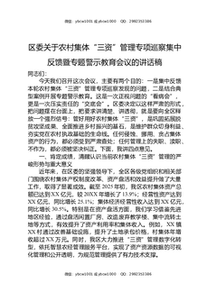 区委关于农村集体“三资”管理专项巡察集中反馈暨专题警示教育会议的讲话稿.docx