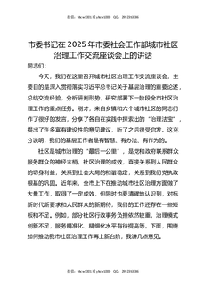 市委书记在2025年市委社会工作部城市社区治理工作交流座谈会上的讲话.docx