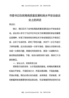 市委书记在统筹高质量发展和高水平安全座谈会上的讲话.docx
