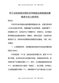 市工业和信息化局在全市制造业高质量发展推进大会上的讲话.docx