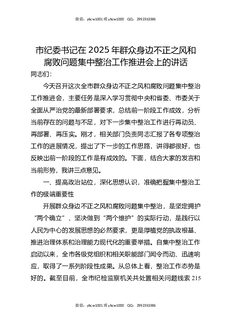 市纪委书记在2025年群众身边不正之风和腐败问题集中整治工作推进会上的讲话.docx
