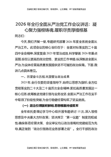 2026年全行全面从严治党工作会议讲话:凝心聚力强根铸魂,履职尽责厚植根基.docx