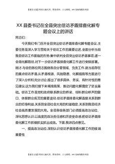 XX县委书记在全县突出信访矛盾排查化解专题会议上的讲话.docx