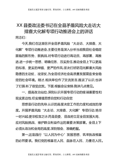 XX县委政法委书记在全县矛盾风险大走访大排查大化解专项行动推进会上的讲话.docx
