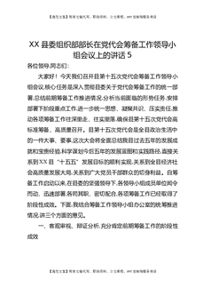 XX县委组织部部长在党代会筹备工作领导小组会议上的讲话5.docx