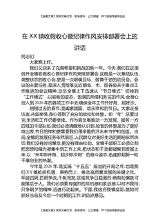 在XX镇收假收心暨纪律作风安排部署会上的讲话.docx