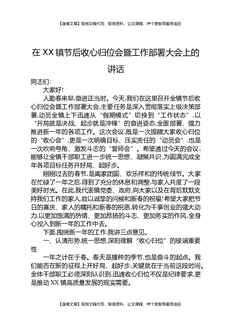 在XX镇节后收心归位会暨工作部署大会上的讲话.docx