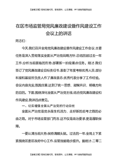 在区市场监管局党风廉政建设暨作风建设工作会议上的讲话.docx