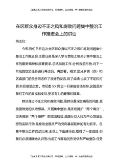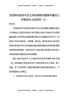 在区群众身边不正之风和腐败问题集中整治工作推进会上的讲话(1).docx