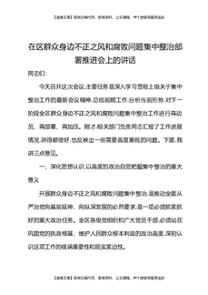 在区群众身边不正之风和腐败问题集中整治部署推进会上的讲话.docx
