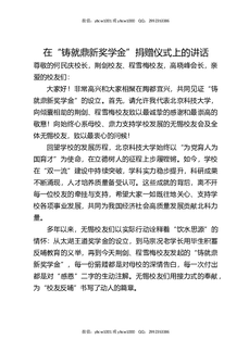 在“铸就鼎新奖学金”捐赠仪式上的讲话.docx