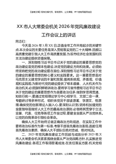 XX市人大常委会机关2026年党风廉政建设工作会议上的讲话.docx