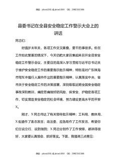 县委书记在全县安全稳定工作警示大会上的讲话.docx