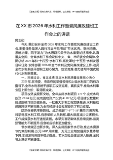 在XX市2026年水利工作暨党风廉政建设工作会上的讲话.docx