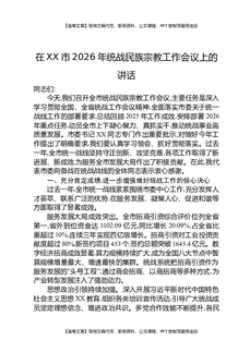 在XX市2026年统战民族宗教工作会议上的讲话.docx