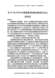 在XX市2026年高质量项目建设推进大会上的讲话.docx
