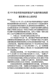 在XX市全市坚持创新驱动产业强市推动高质量发展大会上的讲话.docx