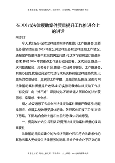 在XX市法律援助案件质量提升工作推进会上的讲话.docx