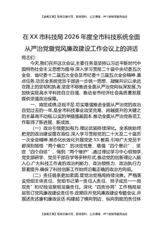 在XX市科技局2026年度全市科技系统全面从严治党暨党风廉政建设工作会议上的讲话.docx