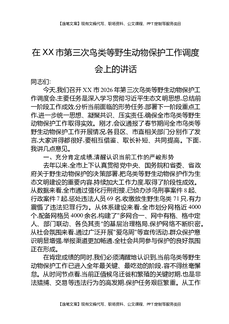 在XX市第三次鸟类等野生动物保护工作调度会上的讲话.docx