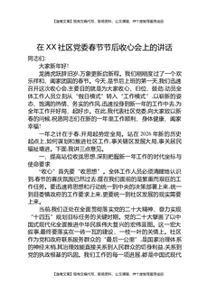 在XX社区党委春节节后收心会上的讲话.docx