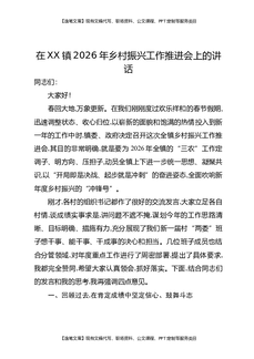 在XX镇2026年乡村振兴工作推进会上的讲话.docx