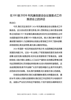 在XX镇2026年党风廉政建设会议暨重点工作推进会上的讲话.docx