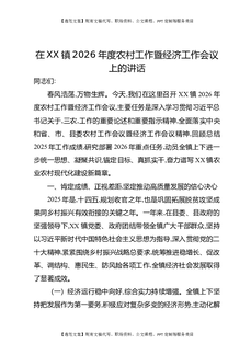 在XX镇2026年度农村工作暨经济工作会议上的讲话.docx