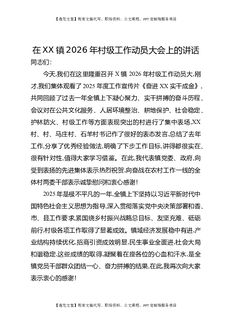 在XX镇2026年村级工作动员大会上的讲话.docx