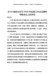 在XX镇传达学习2026年区委工作会议精神专题会议上的讲话.docx