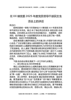 在XX镇党委2025年度党员领导干部民主生活会上的讲话.docx