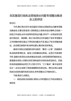 在区基层行政执法领域突出问题专项整治推进会上的讲话.docx