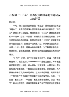 在全县“十五五”重点投资项目谋划专题会议上的讲话.docx