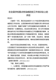 在全县学校重点传染病防控工作培训会上的讲话.docx