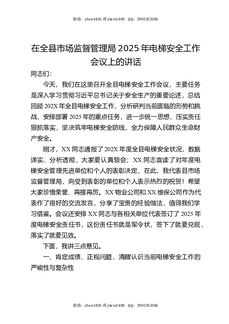 在全县市场监督管理局2025年电梯安全工作会议上的讲话.docx