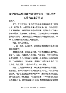 在全县机关作风建设暨招商引资‘百日攻坚’动员大会上的讲话.docx