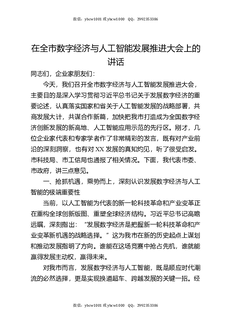 在全市数字经济与人工智能发展推进大会上的讲话.docx