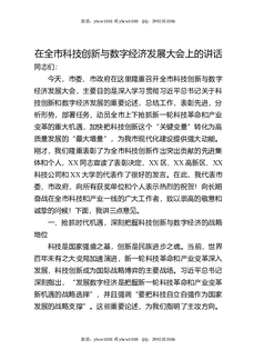 在全市科技创新与数字经济发展大会上的讲话.docx