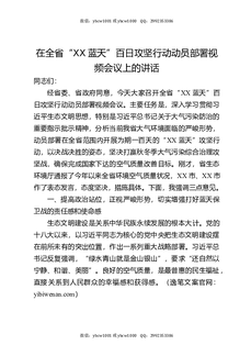 在全省“XX蓝天”百日攻坚行动动员部署视频会议上的讲话.docx