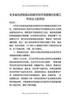 在全省先进制造业和数字经济深度融合发展工作会议上的讲话.docx