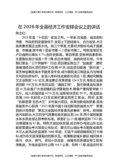 在2026年全县经济工作安排会议上的讲话.docx