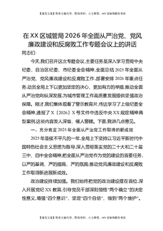 在XX区城管局2026年全面从严治党、党风廉政建设和反腐败工作专题会议上的讲话.docx