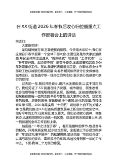 在XX街道2026年春节后收心归位暨重点工作部署会上的讲话.docx