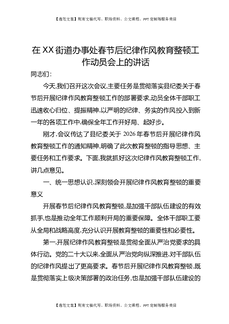 在XX街道办事处春节后纪律作风教育整顿工作动员会上的讲话.docx