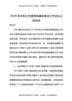 2026年水利工作暨党风廉政建设工作会议上的讲话.docx