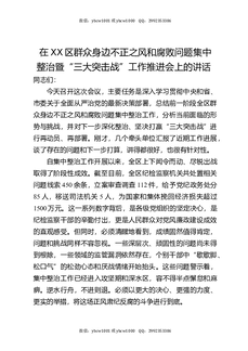 在XX区群众身边不正之风和腐败问题集中整治暨“三大突击战”工作推进会上的讲话.docx