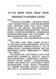 在XX镇“感党恩、听党话、跟党走”群众教育宣传宣讲工作动员部署会上的讲话.docx