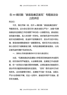 在XX镇妇联“家庭助廉正家风”专题座谈会上的讲话.docx