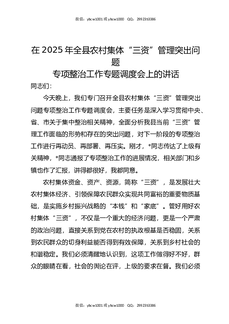 在2025年全县农村集体“三资”管理突出问题专项整治工作专题调度会上的讲话.docx