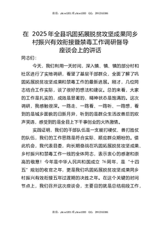 在2025年全县巩固拓展脱贫攻坚成果同乡村振兴有效衔接暨禁毒工作调研督导座谈会上的讲话.docx